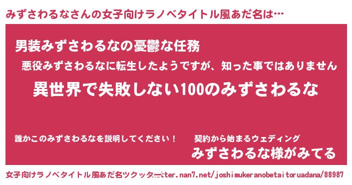 | 男性向けラノベタイトル風あだ名 | 『みずさわるなという概念が存在しない退屈な世界 』 |