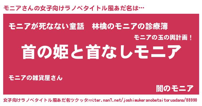 | 男性向けラノベタイトル風あだ名 | 『はたらくモニアさま!』 |