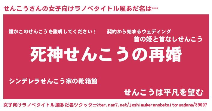 | 男性向けラノベタイトル風あだ名 | 『ノーゲーム・ノーセンコウ』 |