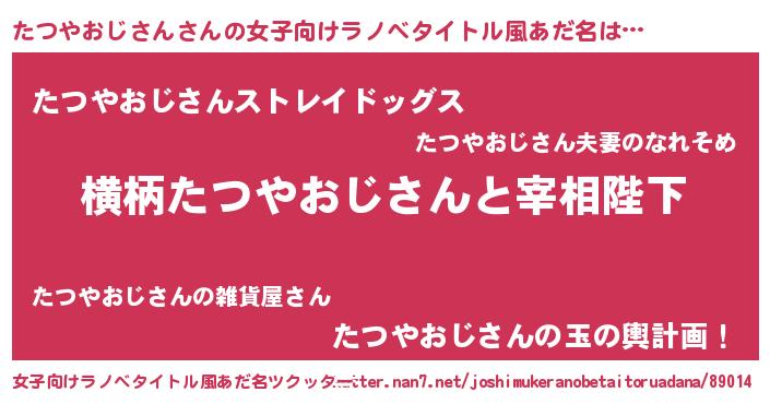 | 男性向けラノベタイトル風あだ名 | 『たつやおじさんに滅ぼされるだけの簡単なお仕事です』 |