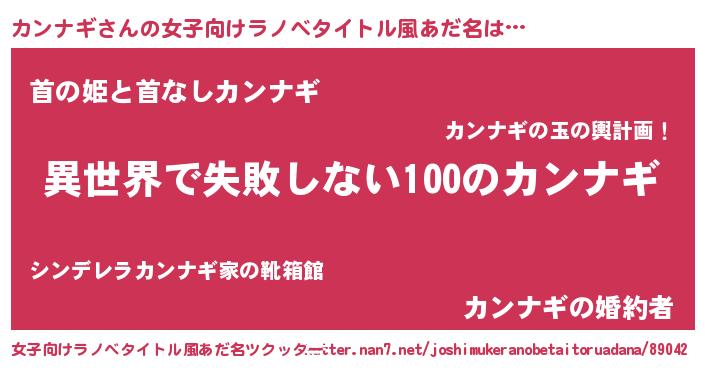 | 男性向けラノベタイトル風あだ名 | 『カンナギという概念が存在しない退屈な世界 』 |
