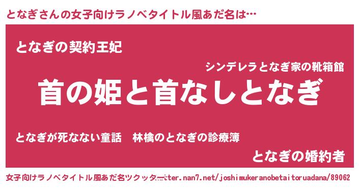 | ヘコむあだ名 | 『となぎ(笑)』『なまこ酢』 |