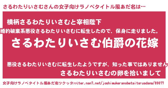 | 男性向けラノベタイトル風あだ名 | 『やはりさるわたりいさむの青春ラブコメはまちがっている 』 |