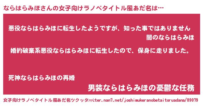 | 男性向けラノベタイトル風あだ名 | 『ナラハラミホスレイヤー』 |