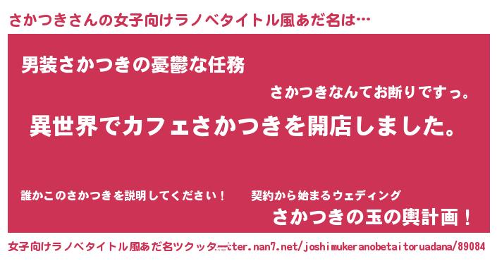 | 男性向けラノベタイトル風あだ名 | 『誰もが恐れるあのさかつきが、ぼくの専属メイドになるようです。』 |