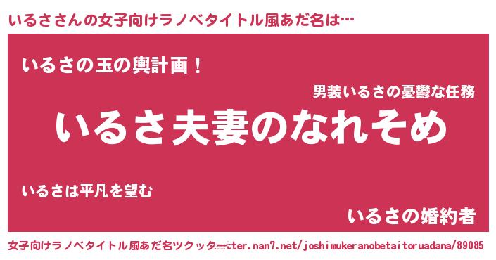 | 男性向けラノベタイトル風あだ名 | 『おまえをオタクにしてやるから、俺をいるさにしてくれ! 』 |