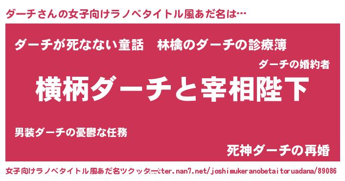 | ヘコむあだ名 | 『なまこ酢』『ダーチ(笑)』『ダーを』 |