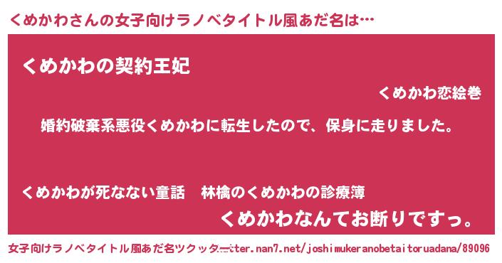 | ヘコむあだ名 | 『くめかわ(笑)』『くめにー』『豆乳』 |