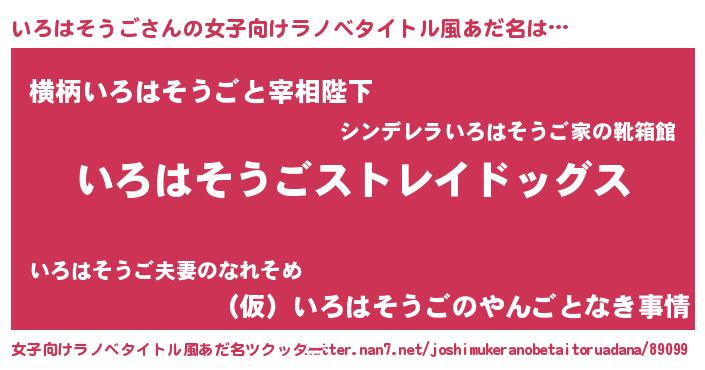 | 男性向けラノベタイトル風あだ名 | 『Re:いろはそうごから始める異世界生活』 |