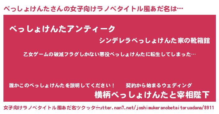 | 男性向けラノベタイトル風あだ名 | 『この素晴らしい世界にべっしょけんたを!』 |