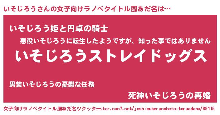 | 男性向けラノベタイトル風あだ名 | 『Re:いそじろうから始める異世界生活』 |