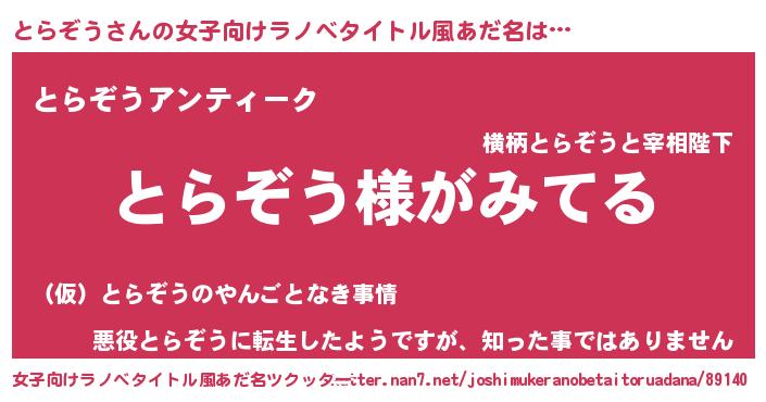 | 肩書あだ名 | 『とらぞう塾長』『とらぞう閣下』 |