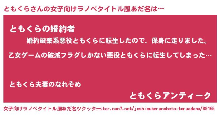 | 男性向けラノベタイトル風あだ名 | 『魔弾の王とともくら』 |