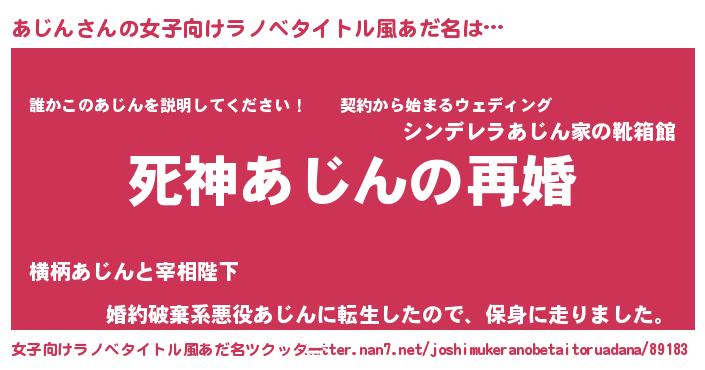 | 男性向けラノベタイトル風あだ名 | 『ノーゲーム・ノーアジン』 |