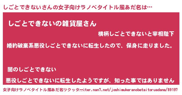 | 男性向けラノベタイトル風あだ名 | 『転生したらしごとできないだった件』 |