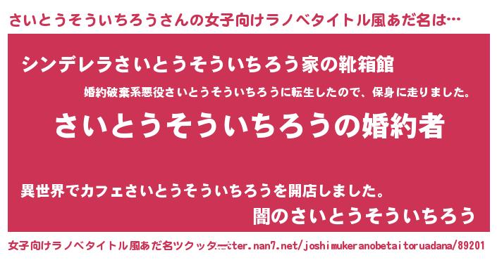 | 意味不明あだ名 | 『さいとうそういちろうフォーエバー』 |