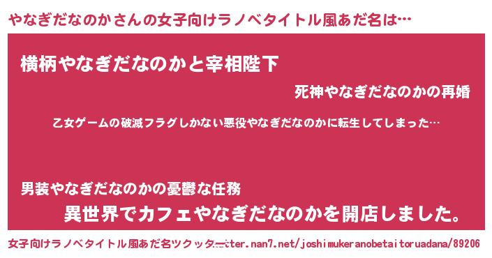 | 意味不明あだ名 | 『住所不定無職やなぎだなのか(13歳)』 |