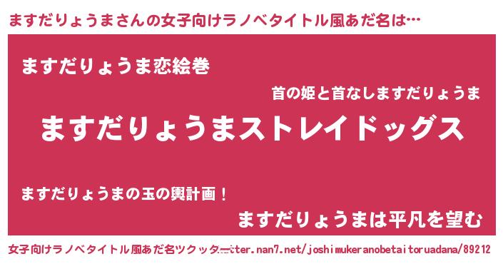 | 男性向けラノベタイトル風あだ名 | 『Re:ますだりょうまから始める異世界生活』 |