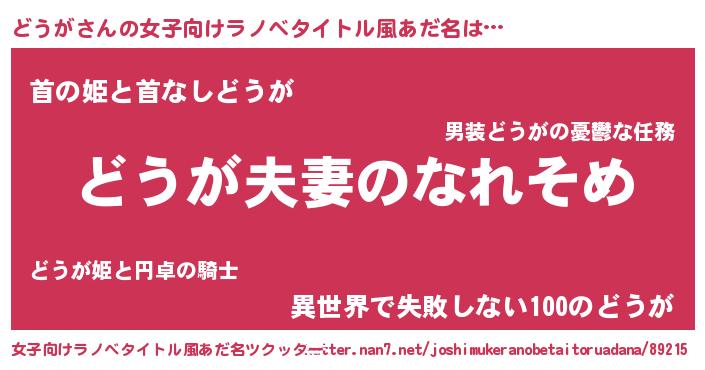 | ファンタジー風あだ名 | 『クインドット』『ドウディッシュ』 |