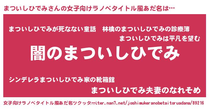 | ヘコむあだ名 | 『まつぷりん』『まつっふぃ~』 |