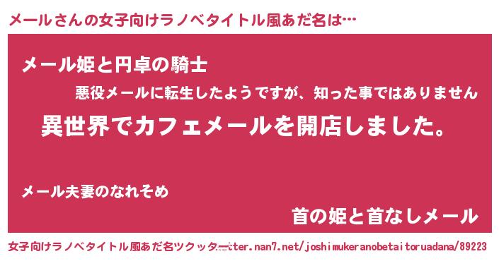 | ヒーロー風カッコイイあだ名 | 『ネオメール』『スーパーメール』 |