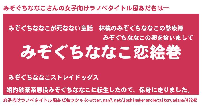 | 男性向けラノベタイトル風あだ名 | 『ノーゲーム・ノーミゾグチナナコ』 |
