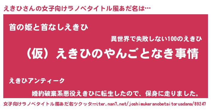 | 男性向けラノベタイトル風あだ名 | 『えきひの憂鬱』『はたらくえきひさま!』 |