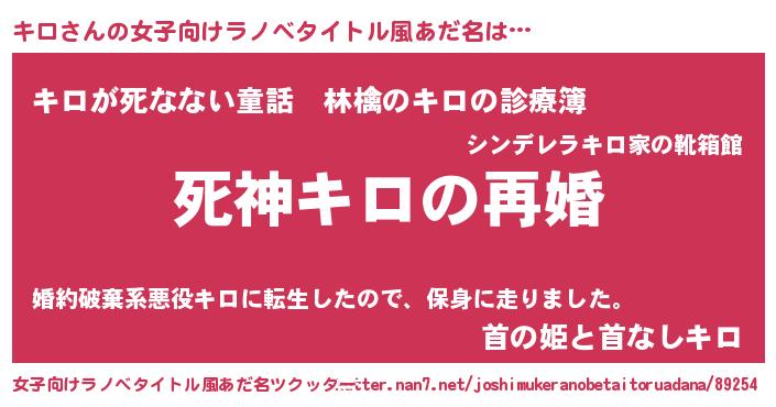 | 男性向けラノベタイトル風あだ名 | 『ノーゲーム・ノーキロ』 |