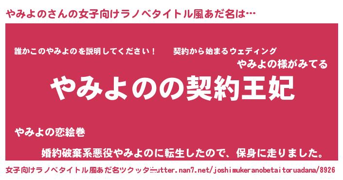 | 男性向けラノベタイトル風あだ名 | 『やみよのという概念が存在しない退屈な世界 』 |