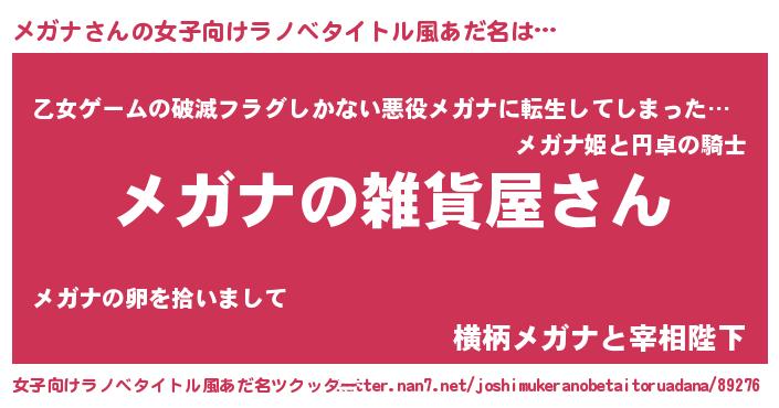 男性向けラノベタイトル風あだ名 | 『やはりメガナの青春ラブコメはまちがっている 』 |