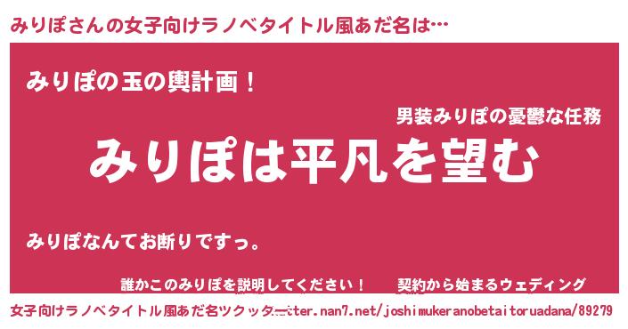 | 胡散臭い通販商品みたいなあだ名 | 『信頼と実績のペンダント…その名も「みりぽ」』 |