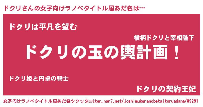 | 男性向けラノベタイトル風あだ名 | 『転生したらドクリだった件』 |