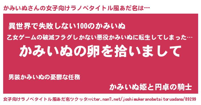 | 男性向けラノベタイトル風あだ名 | 『ダンジョンにかみいぬを求めるのは間違っているだろうか』 |