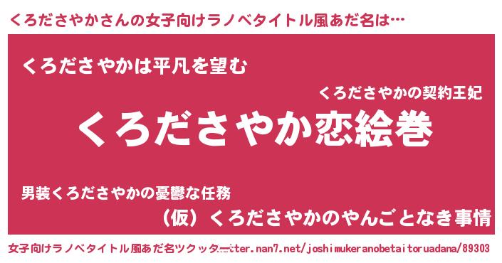 | 男性向けラノベタイトル風あだ名 | 『おまえをオタクにしてやるから、俺をくろださやかにしてくれ! 』 |