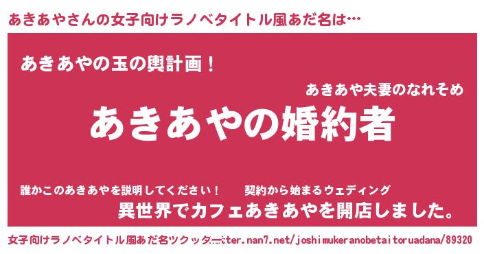 | 意味不明あだ名 | 『あきあやフォーエバー』 |