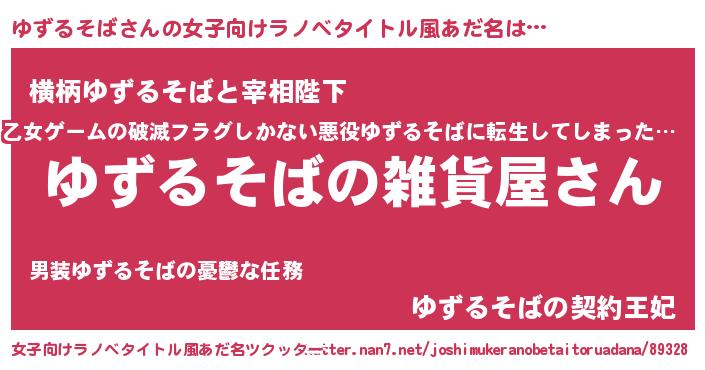 | 男性向けラノベタイトル風あだ名 | 『やはりゆずるそばの青春ラブコメはまちがっている 』 |