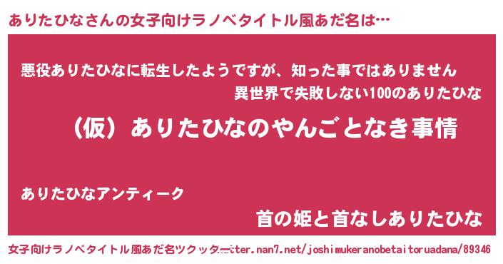 | 男性向けラノベタイトル風あだ名 | 『ありたひなの憂鬱』 |