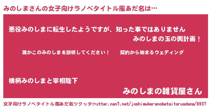 | 胡散臭い通販商品みたいなあだ名 | 『億万長者になれるブレスレット…その名も「みのしま」』 |