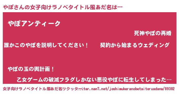 | 胡散臭い通販商品みたいなあだ名 | 『億万長者になれるブレスレット…その名も「やぽ」』 |