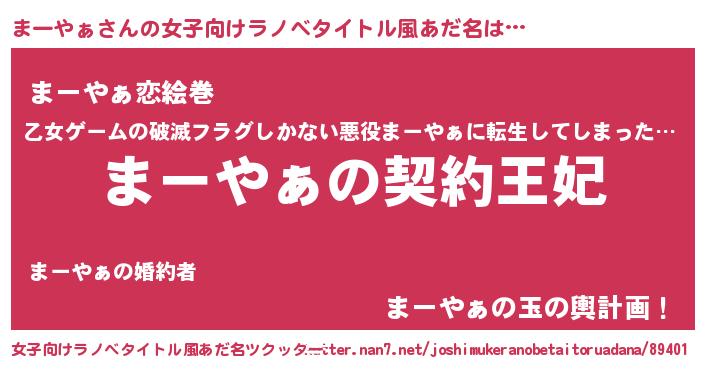 | 胡散臭い通販商品みたいなあだ名 | 『来世でも幸せになれる健康食品…その名も「まーやぁ」』 |
