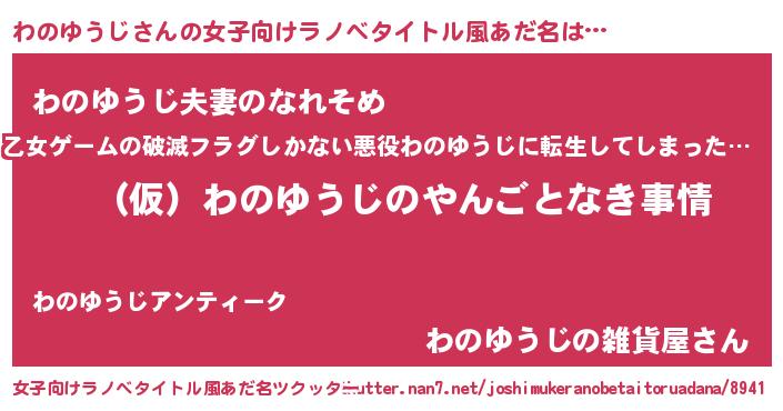 | 胡散臭い通販商品みたいなあだ名 | 『必ず成功するブレスレット…その名も「わのゆうじ」』 |