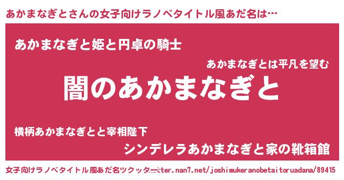 | 肩書あだ名 | 『あかまなぎと閣下』『あかまなぎと社長』 |