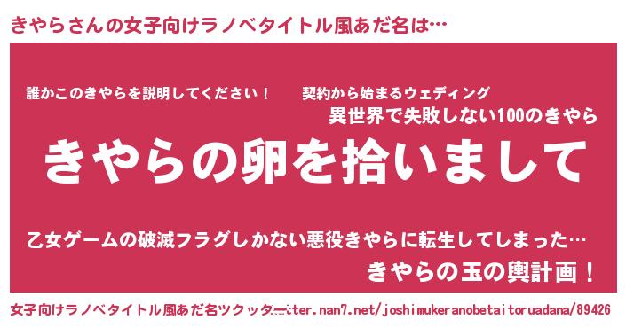 | 男性向けラノベタイトル風あだ名 | 『ダンジョンにきやらを求めるのは間違っているだろうか』 |