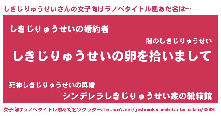 | 男性向けラノベタイトル風あだ名 | 『しきじりゅうせいの嫁は女の子じゃないと思った?』 |