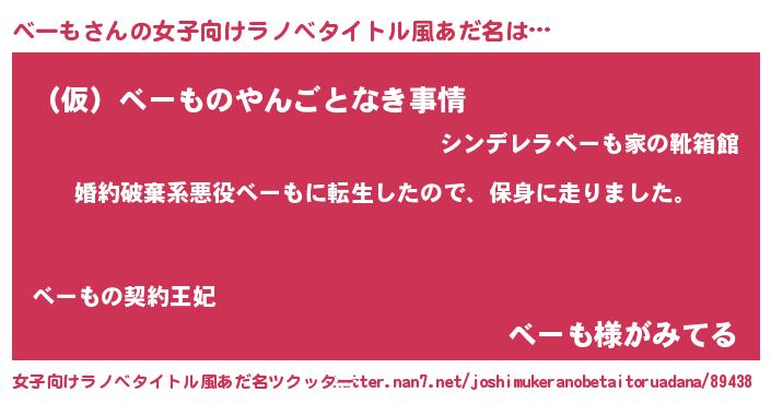 | 男性向けラノベタイトル風あだ名 | 『ベーモスレイヤー』『べーもの憂鬱』 |