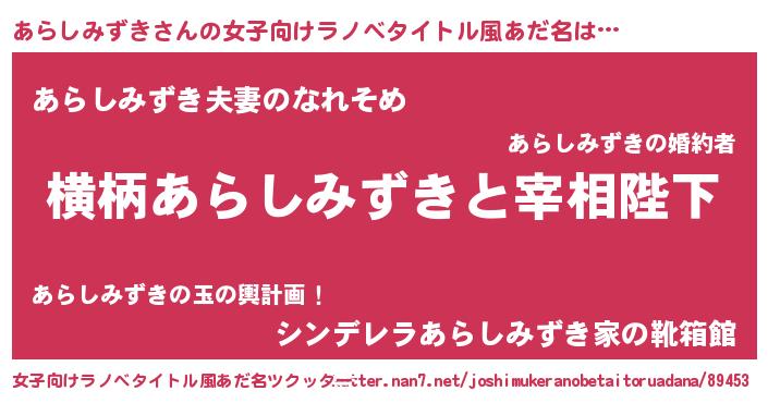 | 男性向けラノベタイトル風あだ名 | 『あらしみずきに滅ぼされるだけの簡単なお仕事です』 |