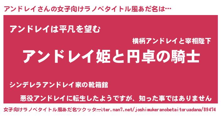 | 男性向けラノベタイトル風あだ名 | 『アンドレイアートオンライン』 |