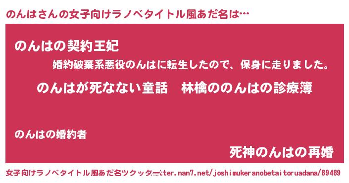 | 男性向けラノベタイトル風あだ名 | 『魔弾の王とのんは』『ノンハスレイヤー』 |