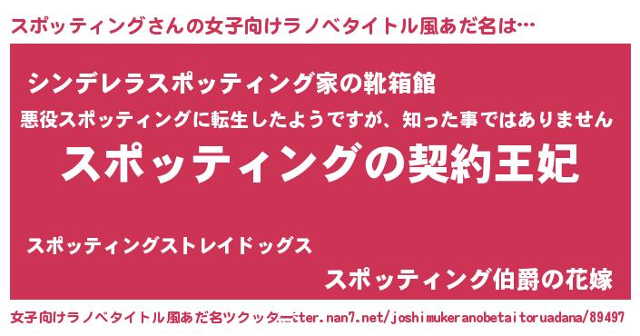 | 胡散臭い通販商品みたいなあだ名 | 『来世でも幸せになれる健康食品…その名も「スポッティング」』 |