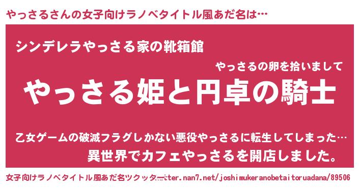 | 胡散臭い通販商品みたいなあだ名 | 『モテモテ間違いなし霊験あらたかなお札…その名も「やっさる」』 |